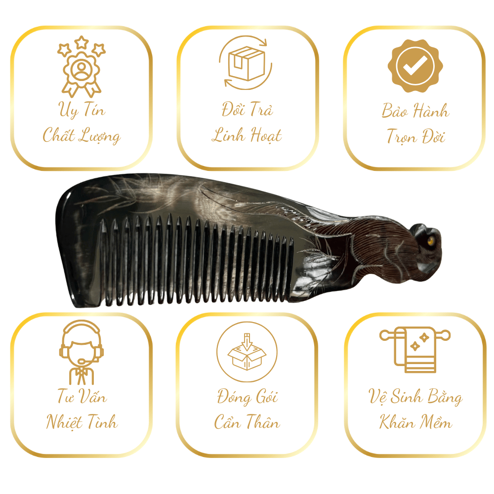 - Lược được làm từ sừng của trâu hoặc bò Châu Phi nhập khẩu.