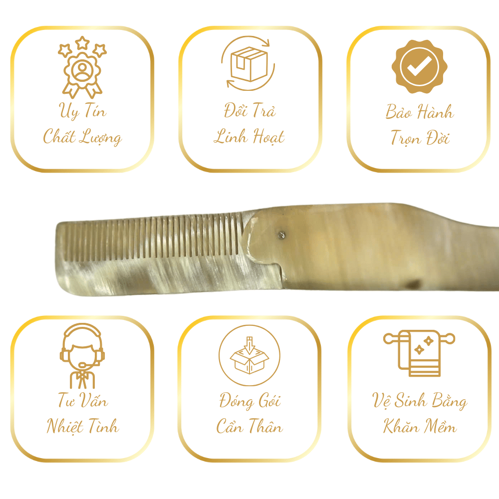 - Lược được làm từ sừng của trâu hoặc bò Châu Phi nhập khẩu.