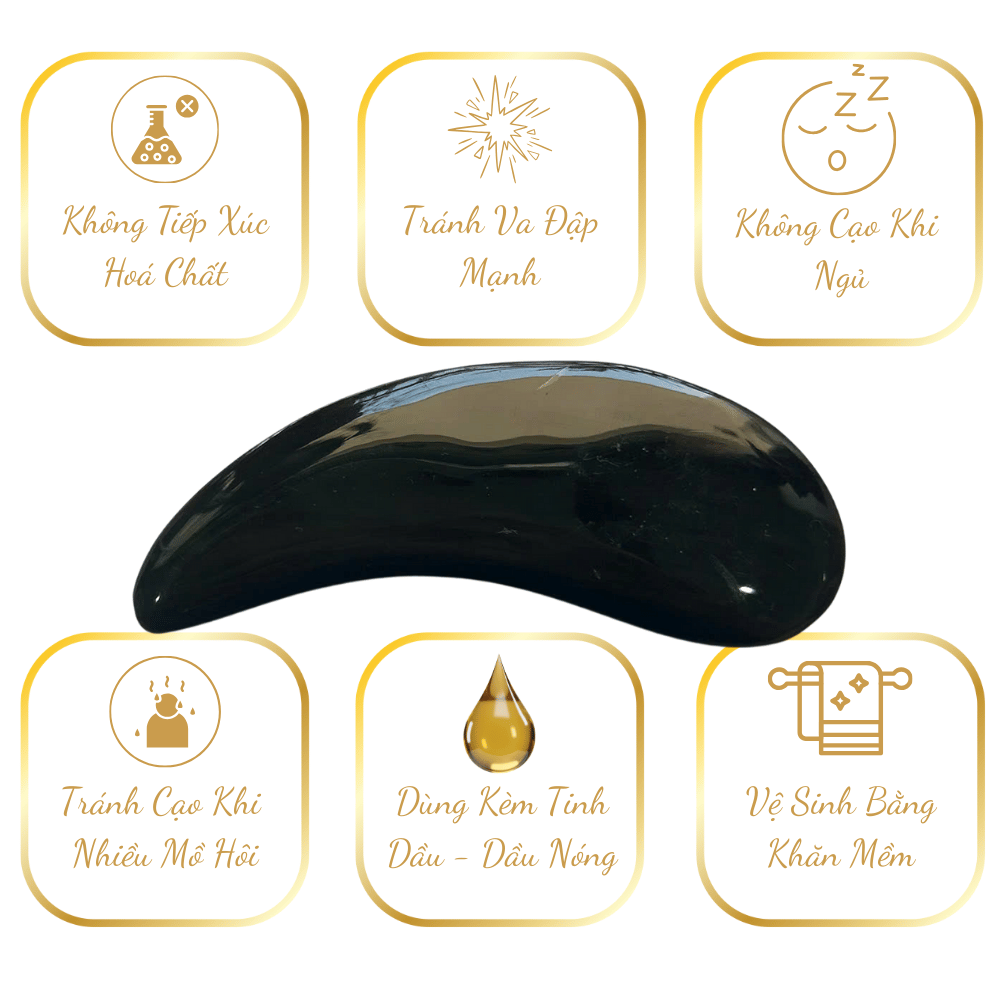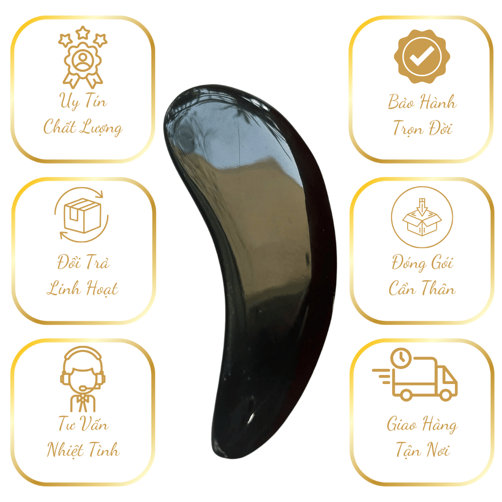 Cạo (đánh) gió rất êm, không gây tụ máu dưới da. Chất liệu Sừng có khả năng phát tán chướng khí và thông khí huyết.